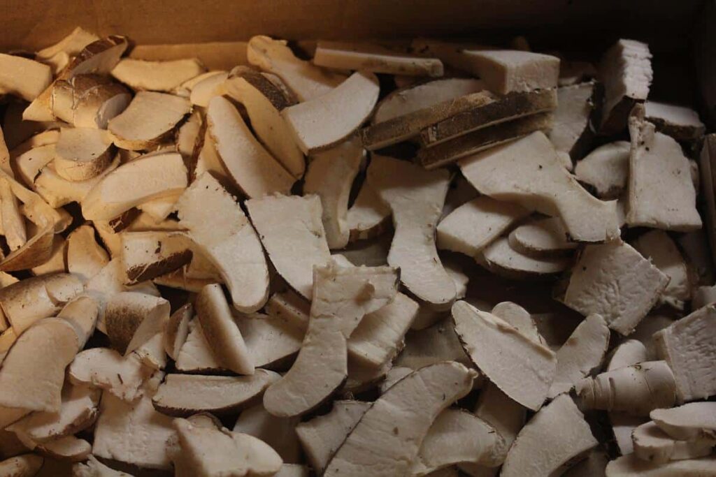Slicing & Drying: The birch polypore is cut into small cubes and gently dried on the heater, the wood stove, or in the oven. Once dried, it can be kept for many years, but it can also be used completely fresh.