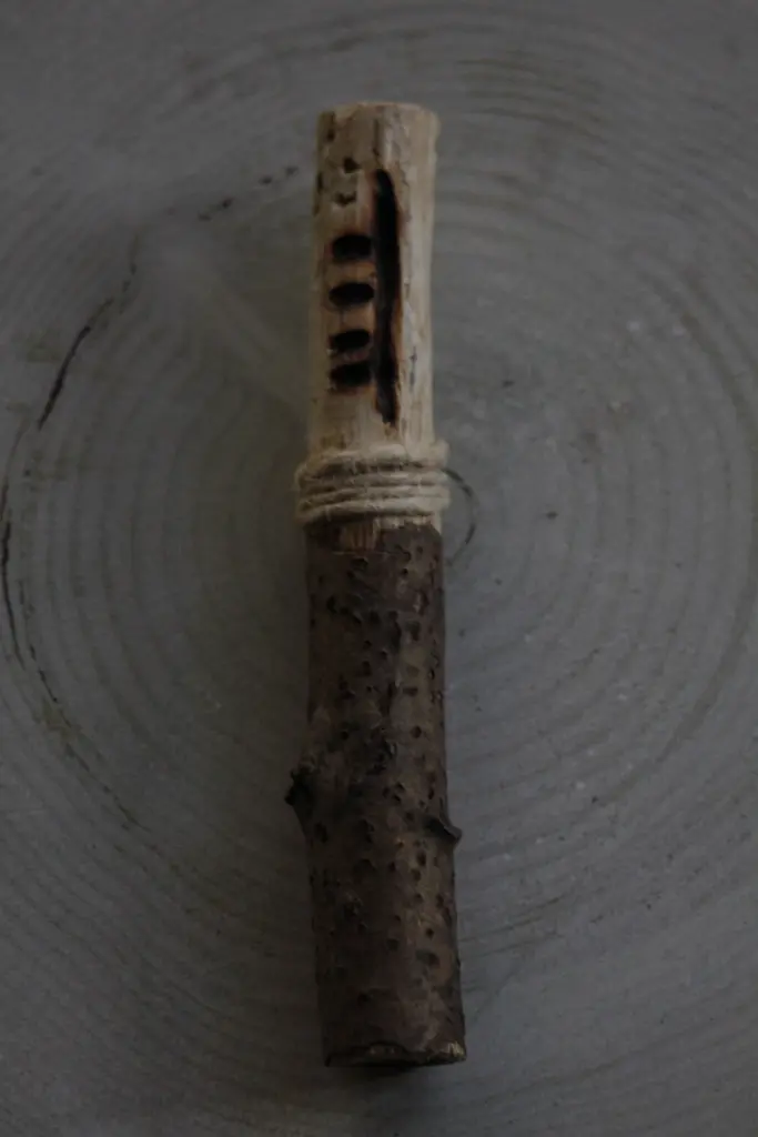 Shaping: You can cut the staves at a gentle angle or, as I have done, carefully remove half of the bark to carve the sacred signs there.
