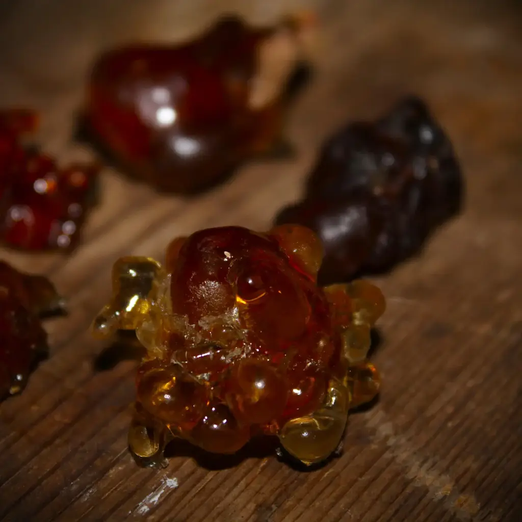 The Golden Tears: In its dried state, it strongly resembles amber, becomes very hard, and completely loses its stickiness. Cherry gum is water-soluble, which makes it wonderfully easy to remove from your hands or harvesting knives.