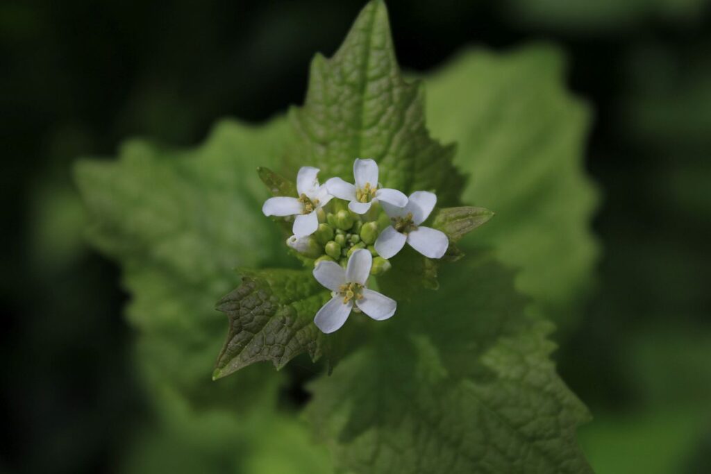 The botanical name of this plant is Alliaria petiolata. The word petiolata stems from the Latin petiolatus, meaning “stalked,” which points to the shape of its leaves. If you rub these leaves gently between your fingers, the plant releases a subtle, enchanting scent of garlic.
