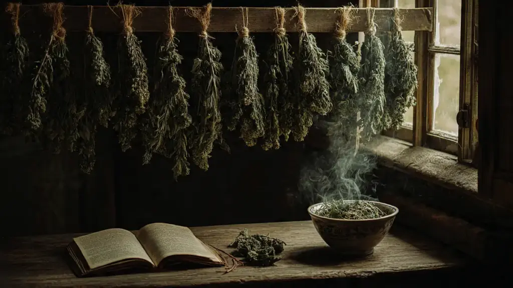 In the “Nine Herb Charm” tradition, Mugwort was essential. It was always included in the sacred herbal bouquet (Kräuterbuschen), a widespread custom throughout Germany.