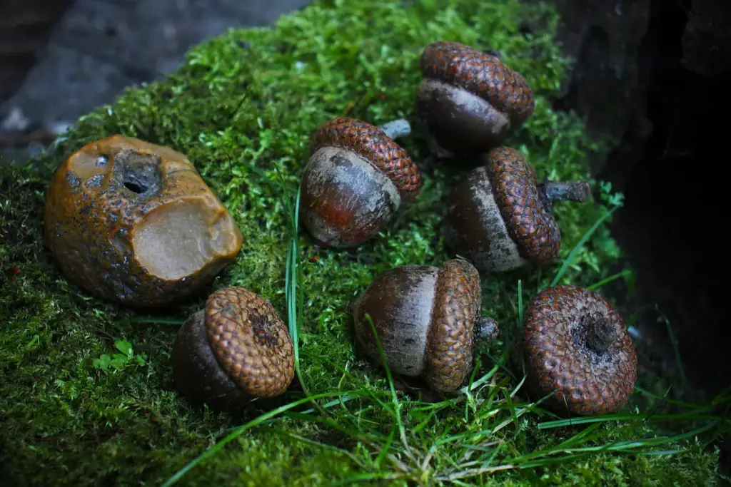 Preparation: You now take an acorn and gently remove its little cap. If it is too difficult, use a kitchen knife to help. Now cut off the upper part of the acorn with the knife and hollow out the inside.