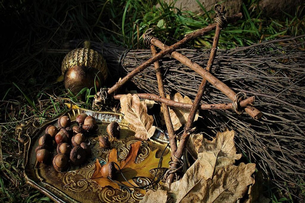 House Blessing: A wreath of oak branches or pieces of oak wood at the front door blocked negative enchantments from entering the home. An oak block inside the house provided protection from harmful magic all year round.