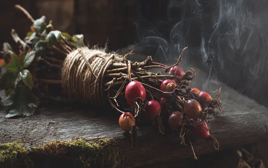 Smoke-cleansing with rosehips belongs to every true love ritual. We can use the dried rosehips, the delicate petals, or even the wood itself. Among the Celts, the thorny branches were traditionally used.