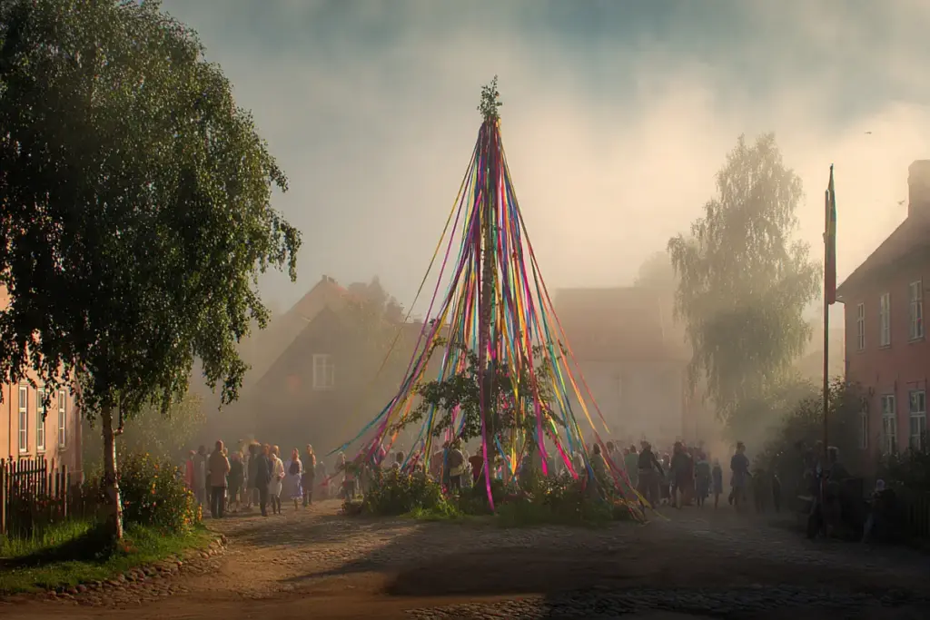 The Ritual of the Gathering: The boy who had to fetch it from the forest had colorful ribbons tied to his bag and headgear. The local community voted together on when this maypole would be brought into the village. This tree was felled with ancient chants and prophecies. Usually, birch or fir trees were chosen for this.